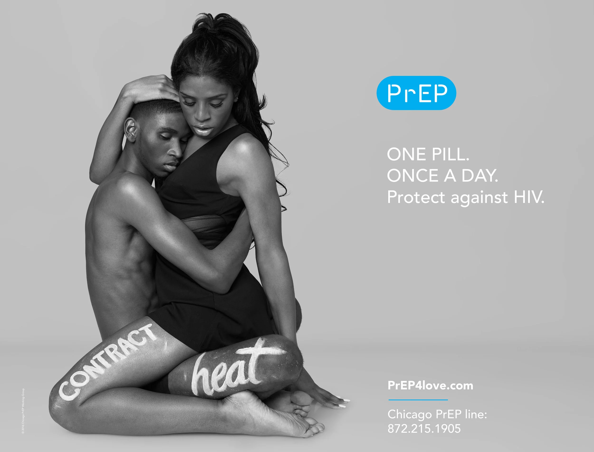 The goal of the PrEP4Love campaign is to improve awareness of PrEP throughout all communities in Chicago, but particularly among those who are most vulnerable to HIV. A recent study by the Chicago Center for HIV Elimination at the University of Chicago reveals the PrEP4Love social marketing campaign generated roughly 41 million unique views across various social media platforms within four months of its pilot launch across Chicago. The campaign was shot by Chicago Photographer Sandro Miller. The post-shoot work for the campaign included retouching, print ads and outdoor production, printing and fulfillment. To further express the campaign message of “heat”, a Chicago bus shelter unit was specially equipped with a heating lamp device.