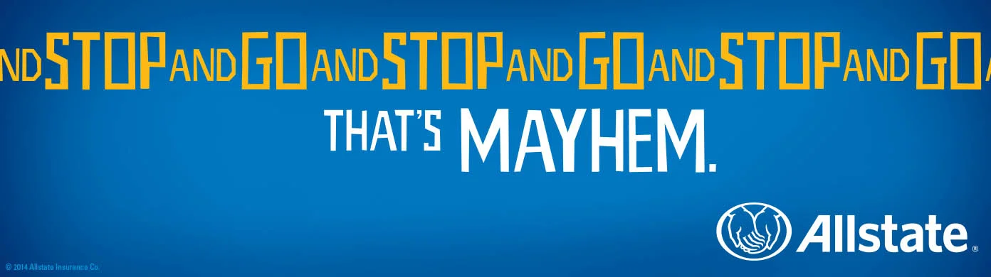 Mayhem Radio - the Outdoor Campaign won Addy Awards, Silver and Gold, 2014. Utilizing short-range radio station broadcasting through specially outfitted billboards, drivers stalled in heavily trafficked intersections could tune in and hear the Allstate Mayhem character.